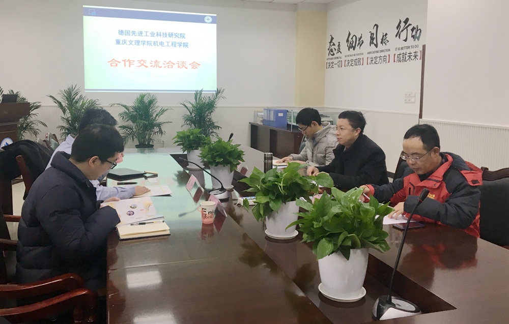 12月29日上午,德国先进工业科技研究院执行董事、中国研究院总经理张伟来校考察交流。学校科技部部长何万国、学院领导王勇、曹勇、李顺江会见了张伟并与他进行了交流洽谈。学院学科办、机械电子工程系相关教师参加了座谈交流。