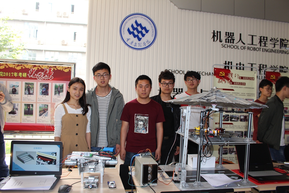 上学期末,重庆文理学院机电学院材料成型及控制工程系主任陈绪林就主持开展了赛前动员,并确定了一批认真负责、具有丰富经验的专业教师担任指导教师。为了完成参赛作品,参赛同学从比赛主题确定后,就一直积极进行各项准备,由擅长不同领域的同学组成了一支支参赛团队,队员之间分工明确,通力合作,利用一切课余时间讨论、调整、完善作品。春节期间更是牺牲了部分休息时间,留在学校,加班加点进行赛前的准备和参赛作品的制作。开学后周末加班加点,赛前数度通宵达旦地工作,一次次的试结构、算配重、调程序、录视频、改讲稿,终于功夫不负有心人,学院推荐的3支团队成功入围全国比赛。