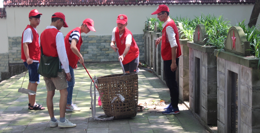到达陵园后,全体团校学员立即着手开始清扫工作。大家分工合作,有条不紊。经过近四十分钟清扫,将烈士陵园各个角落打扫得干干净净。接着,两委会组织规划部副部长郭岱鑫带领全体学员在烈士陵园前重温入团誓词,并庄严承诺将努力学习,继承和发扬革命先烈遗志,为国家富强和民族复兴奉献自己的青春和力量。
