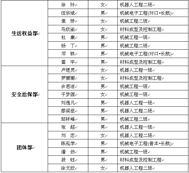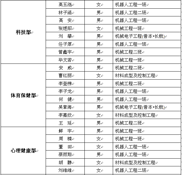 附件:第六届团总支、学生会各部门干事拟录用名单