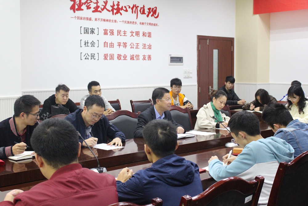 最后,曹勇讲话并布置工作。他充分肯定了过去一学期学习委员和学习部所做的工作和取得的成绩,强调了学习委员在学风建设中的重要性,并对学习委员提出了“四点要求”和“三点鼓励”。他要求学习委员:一要严格考勤。尤其是课堂考勤,不能出现包庇旷课的现象,要客观真实反映课堂出勤情况。二要及时汇报。随时保持与辅导员的沟通,把学习中发现的新情况、新问题原滋原味地反馈到教学办和辅导员,为学院做好人才培养工作提供决策参考。三要以身作则。作为学习委员要严格要求自己,在学生中起好示范带头作用。四要树立责任意识。树立责权利相统一的意识,正确履行自己的职责,力戒“懒政”、“庸政”现象。同时,他也希望全体学习委员积极鼓励班级同学认真学习,戒掉年轻人容易出现的惰性、盲目性;鼓励班级同学积极备战考研,让人生发展迈向新台阶;鼓励班级同学积极参加学科专业竞赛,把旺盛的精力投入到学习专业知识、锻炼实践能力、提升综合素质中去。