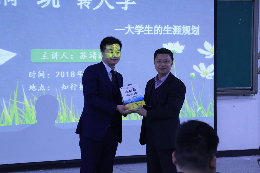 苏靖淋首先以幽默的语言分享了自己的职业经历与感受。然后从大学“思考:为啥玩——大学到底为谁学习”、 “提问:玩什么——激发内心想要什么”、“方案:怎么玩——如何才能实现目标”三个方面对大学生涯规划进行了轻松、细致、颇含哲理的阐述。他用自己的亲身经历,向学弟学妹们展示了一个科学的大学生涯规划及其对人生成长的重要影响。他希望学弟学妹们在大学四年要善于畅想未来,有明确、清晰而且长远的奋斗目标,能有所思、有所悟,并将所思所悟应用到日常的学习生活。