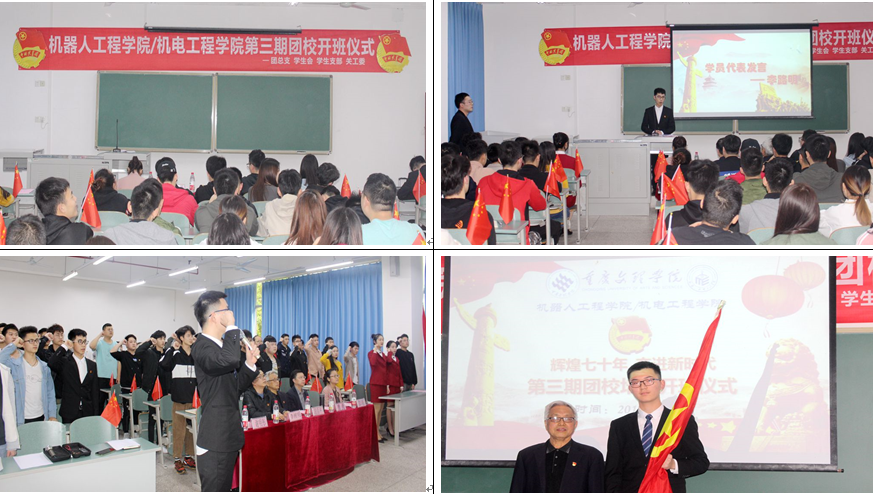 仪式在嘹亮团歌声中拉开帷幕。2018级机器人工程一班学生耿士博带领大家重温入团誓词,2018级机械电子工程(普本.长航)班学生李路明作为学员代表上台发言,并庄严承诺在团校培训中勤奋学习、刻苦锻炼,将自己培养成为合格的共青团员。李兴成宣读团校管理办法。段昌平为本期团校授旗。他希望各位学员“分享春的今天,拥抱春的明天”,在团校培训中茁壮成长。