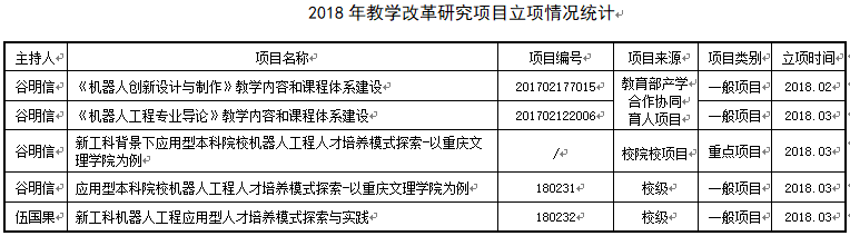 2018年教学改革研究项目立项情况统计