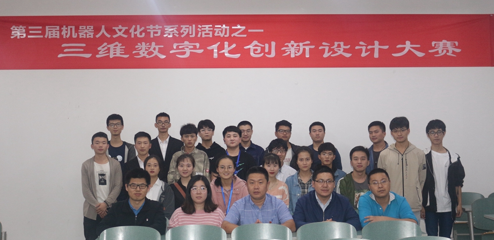 5月20日晚,第三届机器人文化节系列活动之一——三维数字化创新设计比赛在知行楼A101举行。比赛由专业教师伍国果全程赛前指导。学院党总支书记曹勇、创客中心主任赵立军、专业教师吕程、伍国果、奚陶、艾存金出席本次比赛并担任大赛评委。