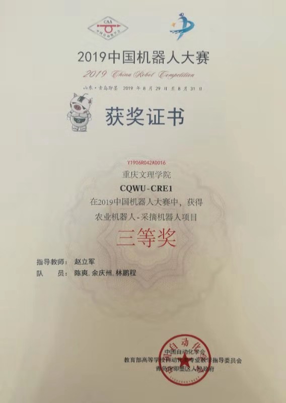 伟德国际1946创新创业办主任赵立军高级工程师、实训中心李文江高级实验师率领两个学生团队参加了“农业机器人”项目比赛。经过激励的角逐,最终李文江高级实验师指导的、2017机械工程李林杰、陈小松、王灯团队力克西北农林科技大学、中国农业大学、南京农业大学等985、211高校参赛团队获得本次大赛农业机器人-采摘机器人项目冠军(一等奖);赵立军高级工程师指导的,2017级机器人工程陈爽、2017级机械工程余庆洲、2018级机械工程林鹏程团队获得本次大赛农业机器人-采摘机器人项目三等奖。