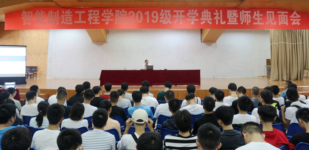 9月9日 下午,智能制造工程学院2019级新生开学典礼暨师生见面会在红河A区学生活动中心三楼举行。学院领导、各科室负责人、全体在校的专业教师出席会典礼。2019级400多名新同学参加了会议。典礼由党总支书记曹勇主持。