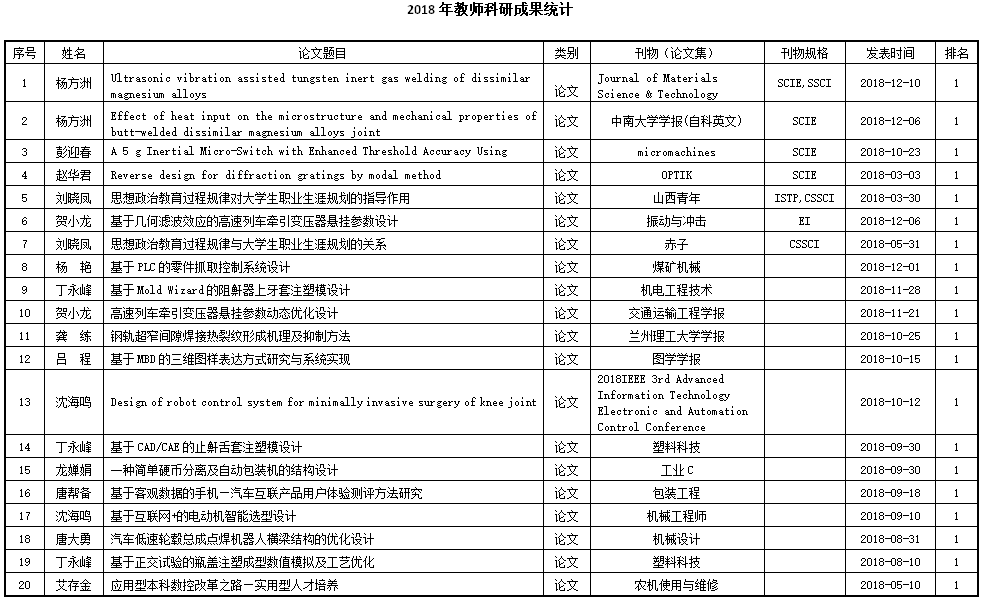 2018年教师科研成果统计